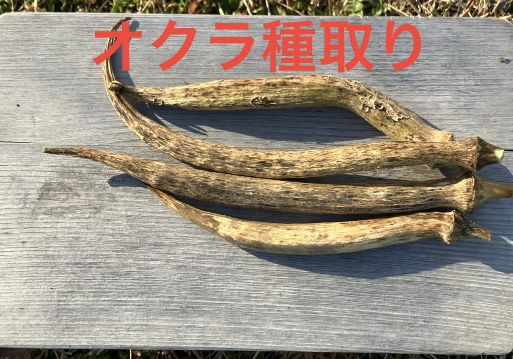 オクラも種取り用に放置していたものがありましたが、回収して乾燥させて種取りへと進みます。